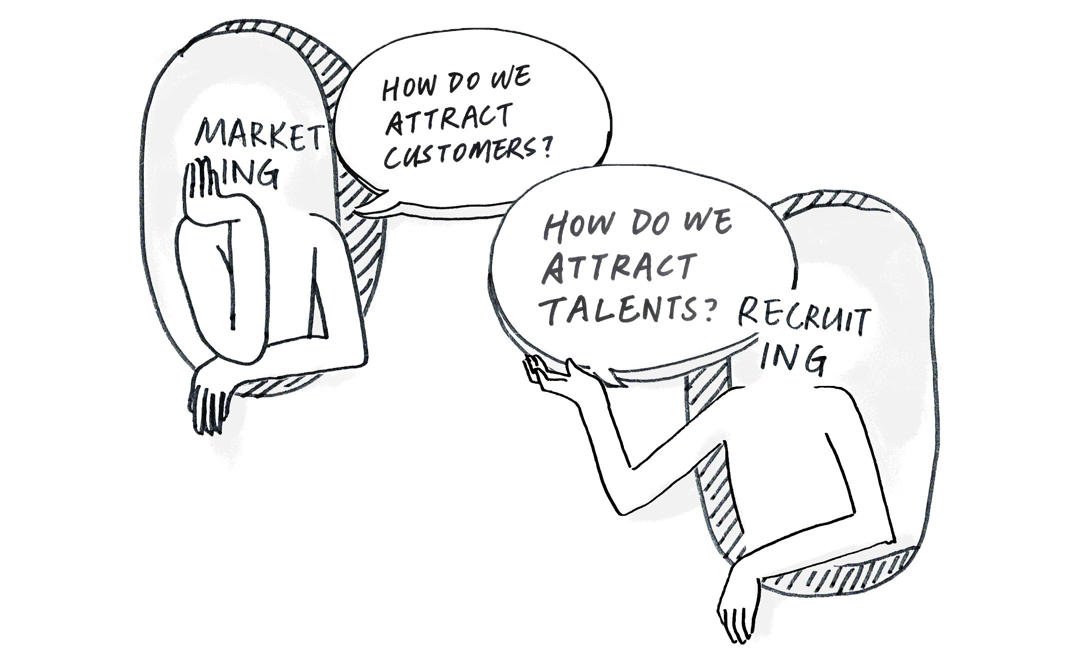 Classic marketing questions are now being asked in HR: Which people are we addressing, on which channel, with which messages? Topics like personas and user journeys are gaining relevance. Many KPIs are also comparable: marketing looks at customer satisfaction, HR looks at employee satisfaction. And both want to reach high numbers to minimize turnover costs.