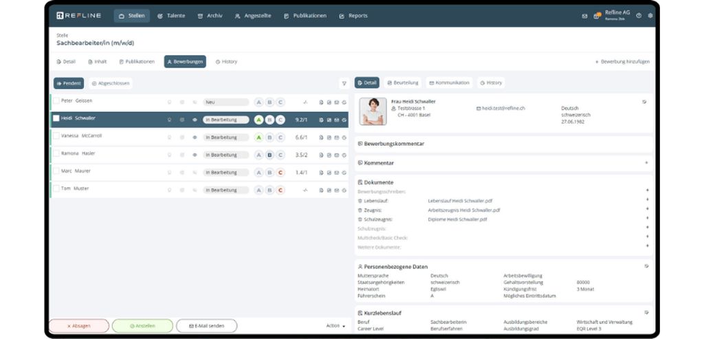Une bonne solution de recrutement en ligne accompagne l’ensemble du parcours candidat – de la publication des annonces à la gestion des communications, en passant par la réception des candidatures et jusqu’à la décision finale. Elle réduit la charge administrative, clarifie la collaboration entre équipes et fait gagner un temps précieux. Le logiciel de recrutement proposé par Refline, par exemple, peut être adapté aux besoins spécifiques. Que vous soyez une PME en croissance ou une entreprise établie, vous décidez quelles fonctions utiliser.