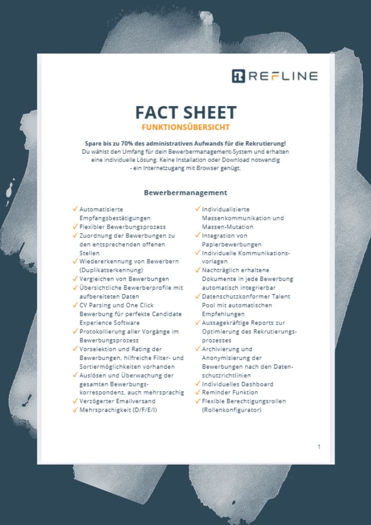 Alles Wichtige zu Refline auf einen Blick: Der Flyer gibt dir einen kompakten Überblick über die zentralen Funktionen von Refline und wie sie dich konkret im täglichen Recruiting unterstützen.